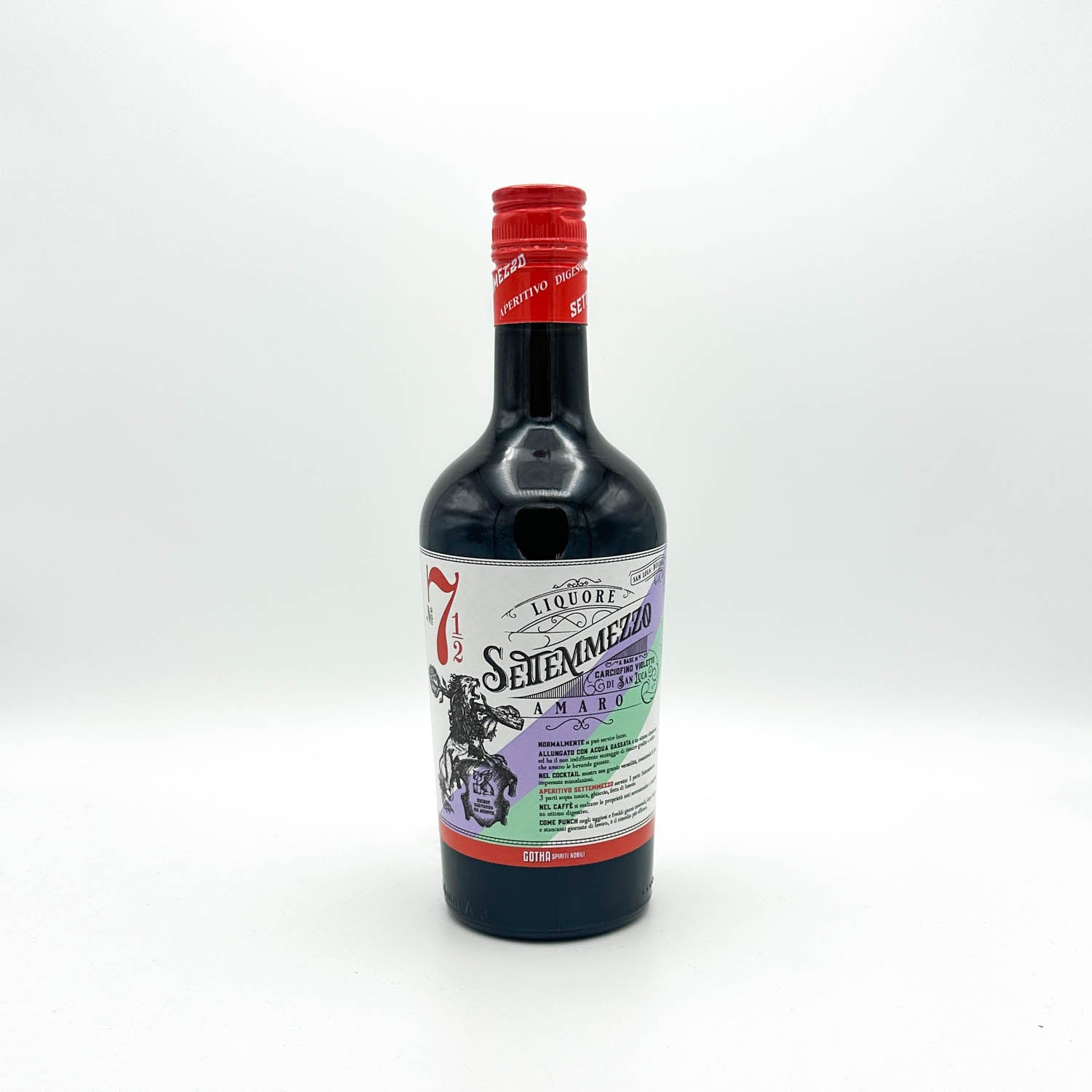 Settemmezzzo is a bitter artichoke liqueur made from a specific species of artichoke, Carciofo Violetto di San Luca, which only grows in the town of San Luca outside of Bologna. The delicate artichoke flavor comes through as fresh herbs, citrus and licorice and also adds a bittersweet component. This is complemented by orange from the chinotto peels and slight smokiness of the rabarbaro. Because the flavor profile is so complete it works as both an aperitivo or digestivo, solo or in cocktails. Settemmezzo (7 1/2) is named after a card game historically played in the osterias and bars of Bologna, outlawed because it involved betting. Residents of course continued to play in back rooms and in secret, cementing an infamous Bolognese tradition.