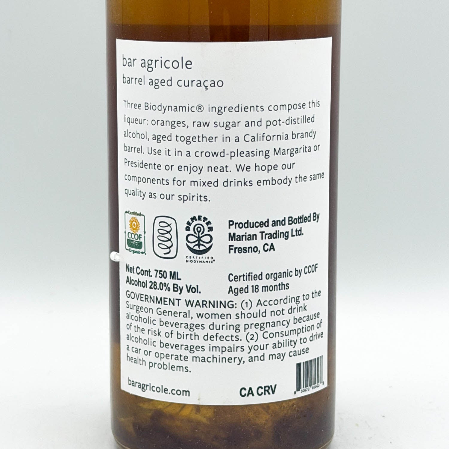 Bar Agricole was a restaurant and bar in San Francisco founded by bartender, author, and entrepreneur Thad Vogler. A pioneering figure in the spirits business, he is a tireless champion of traditional production methods and heritage spirits. He started a spirits brand with the same name in collaboration with distiller Gena Nonini from Marian Farms in central California several years ago. Gena is a third generation farmer who initially purchased a still to make essential oils. She produces spirits from Demeter certified biodynamic grapes. This liqueur contains just 3 biodynamic ingredients; grape spirit, raw sugar, and oranges, aged together in a California Brandy barrel.