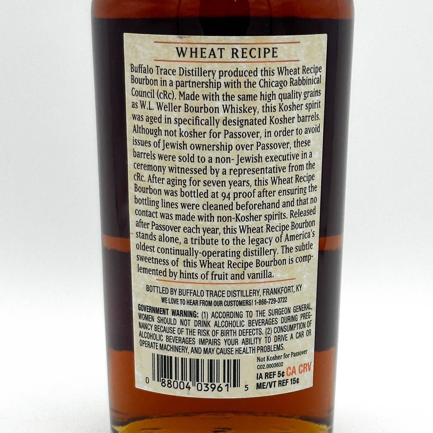 Certified Kosher by the Chicago Rabbinical Council. Made with the same grains as those used in the WL Weller and Pappy Van Winkle Bourbons, this whiskey was aged in specifically designated Kosher barrels. Not technically Kosher for Passover. Aged for 7 years and bottled at 94 proof.