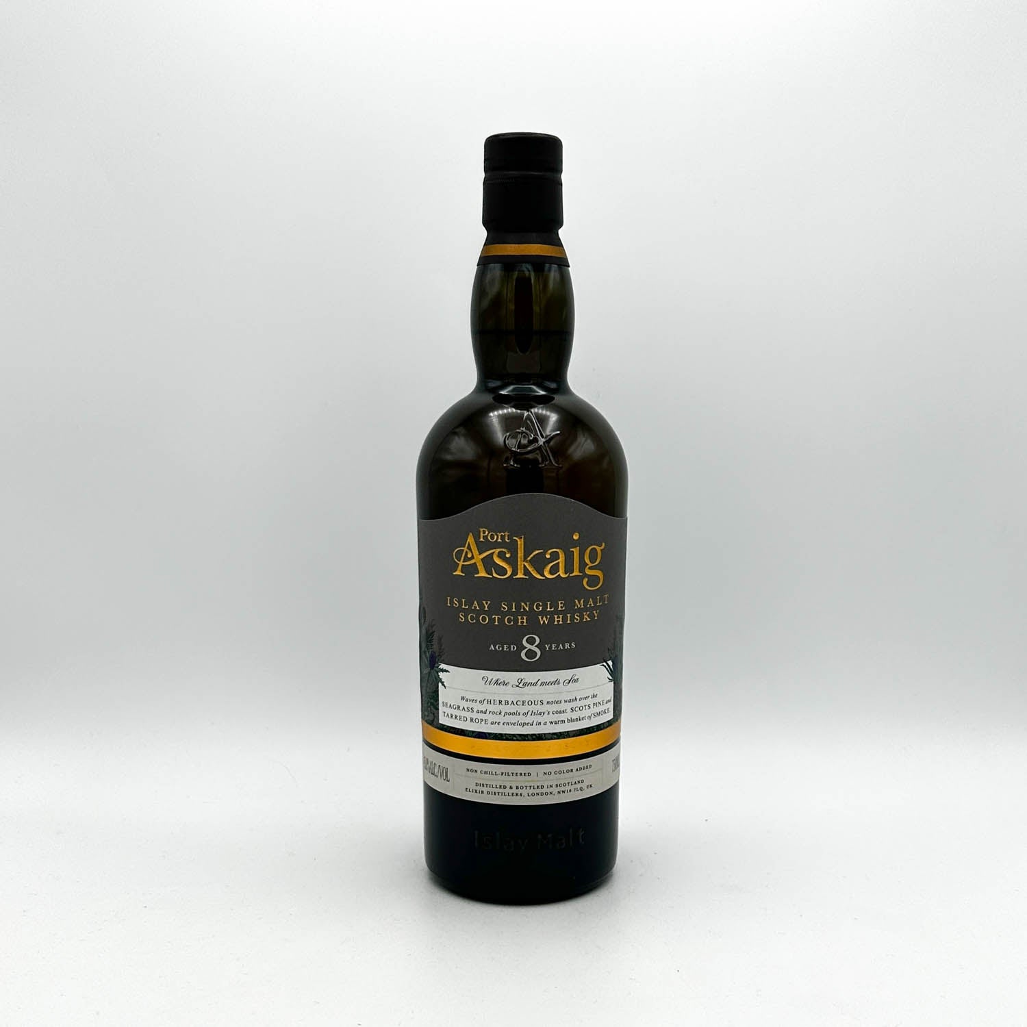 Port Askaig is a village on the northeastern coast of Islay, Scotland and is the location of the main ferry entrance to the island. The brand was created by independent bottlers Elixir Distillers and it is an open secret that they source barrels for their core lineup from the Caol Ila Distillery on Islay. This is an 8 year old single malt that was aged in ex-Bourbon barrels. Lemon oil, sea spray, soft sweet smoke. A gentle, approachable, and moreish peaty dram.